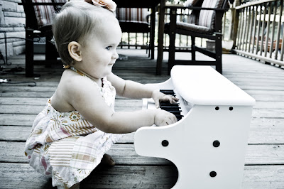Abigail gave her first outdoor piano concert this evening. We got her this little piano for her birthday, and she has absolutely fallen in love with it. Doesn’t surprise me though, she is around music a lot with Jason playing guitar, and myself playing the piano. She treats her little piano very delicately. I would expect her as a 1 year old to pound on it, climb on it, hit it, etc… when she plays her piano she will use little fingers one at a time, and hit keys one at a time. She will push her little finger to hit a key and look at me, as for approval. After she hits a few keys we always stop to clap and say yea…
